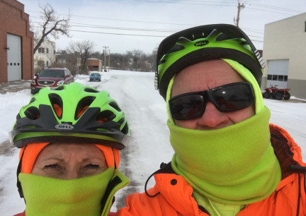 | fat bike on snowy ice icy snow streets roads belle fourche south dakota sd |