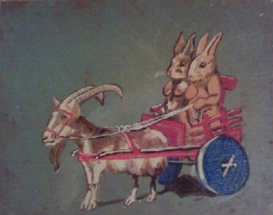 rabbits bunnies bunny goat chariot cart wagon harness
