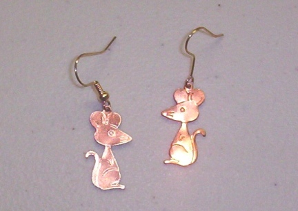 These little copper toned pieced earrings are just the cutest, Rattie earrings. They were made by me with gold toned fish hook type pieced earrings.