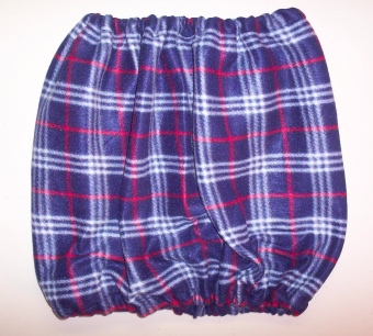 This item is a Blue Plaid, thin type, polar fleece, Rattie Caddy. It will hold one or two ratties while they sleep, eat or play in it as you wear this around your neck. This item goes on over your head and will sit around your neck. You will stay warmer and your ratties will love to play and sleep within.