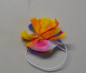 This is cute and even cuter with a rat head under it. It is made out of a Tye Dye polar fleece. It stays on the ratties head with elastic. The elastic is left long when it arrives to you so that you can cut it or tuck it to fit your own rattie.