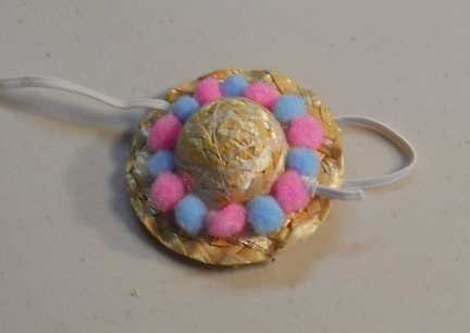 This is cute and even cuter with a rat head under it. It is a rat sized and quite a Lady Rat Bonnet. It stays on the ratties head with elastic. The elastic is left long when it arrives to you so that you can cut it or tuck it to fit your own rattie.