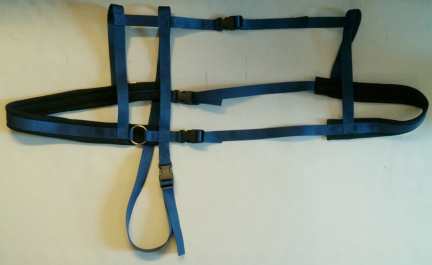 This is an easy to put on and off Wagon Harness for Goats. It has four quick release buckles, once set up to the goats size with easy adjusting, takes about 20 seconds to put on or take off the goat.