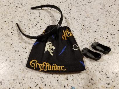 With this lot you will receive what you see in the photo. The cute little Harry Potter Print Skirt, the cute little Black Pair of Shoes (that click on from the little toe over and STAY on the foot!) as well as the matching Headband.