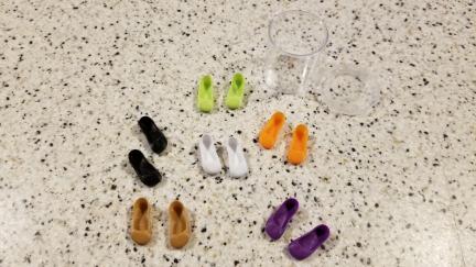 These are really cute and were Custom made for the KENNER, ASHTON DRAKE, TAKARA OR GOOD SMILE BLYTHE DOLLS. With this lot you will receive all 6 pairs of shoes, white, tan, lime green, purple, orange (Iconic Kenner Color), and black. They come in a little case that is approx. 1 1/2" tall and has a diameter of approx. 1 1/4"